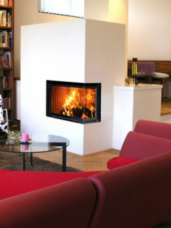 Moderne cheminée à gaz à trois faces.